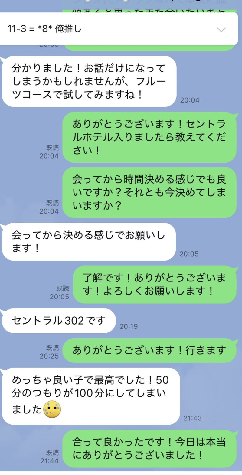 らむさん清楚系で可愛らしくすばらしいキャストに間違いはないのですが、最後までミステリアスな印象でした。らむさんの扉を初見で開かせた数日前の日報のお客さん、すごいとおもいました。相性もあると思いますし、そうしたキャストに出会えたらそれこそが醍醐味なんでしょうね。
