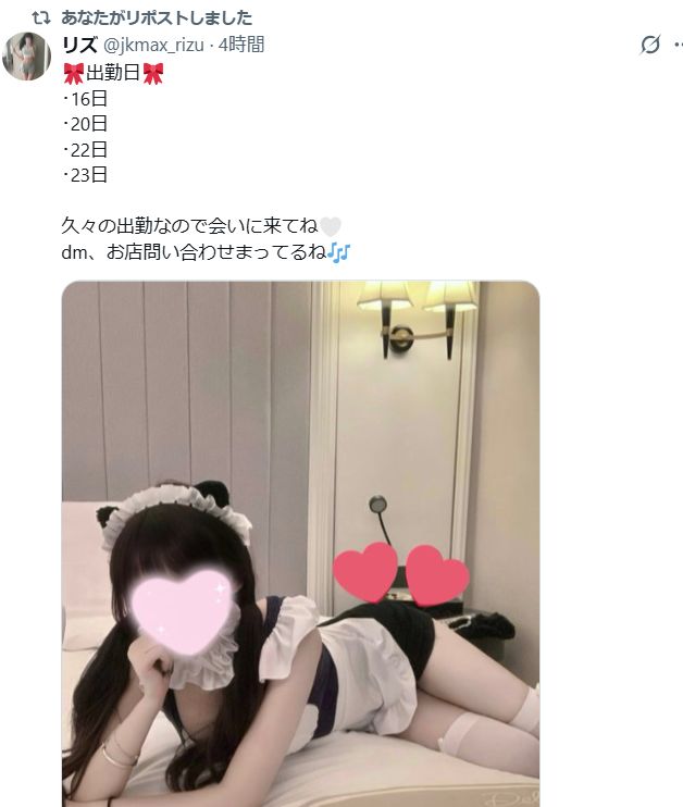 京子ちゃんがJKMAXに来てくれてからもうすぐ半年。並のキャストさんならマンネリが始まって勤怠やシフトがふわふわしてしまう時期ですが…これから1年で2番目に稼げるシーズンのゴールデンウィークを迎えようとしている今!!!エンジンがかかるのは素晴らしい事。